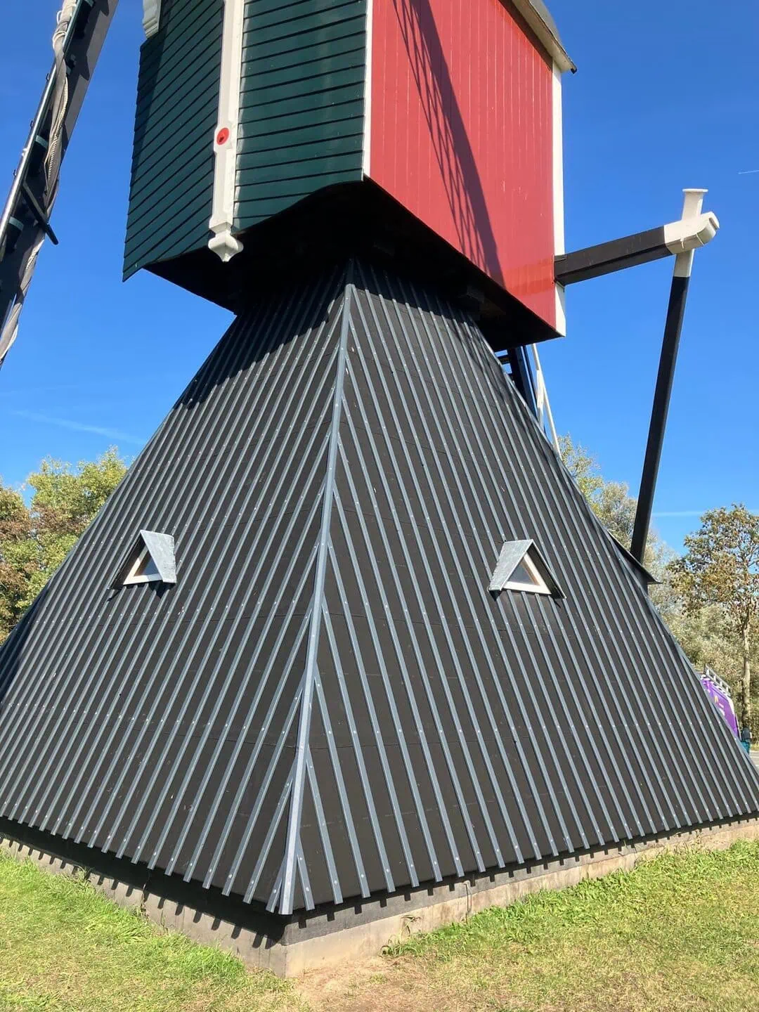 Het meest recente project betrof het herstel van de molenromp, dat wij eveneens in opdracht van de stichting hebben afgerond. In nauwe samenwerking met gespecialiseerde partners is de romp voorzien van een beschermende bitumenlaag. Daarnaast zijn de deklatten vervangen, waardoor de molen zijn karakteristieke ritmiek en authentieke uitstraling heeft behouden.